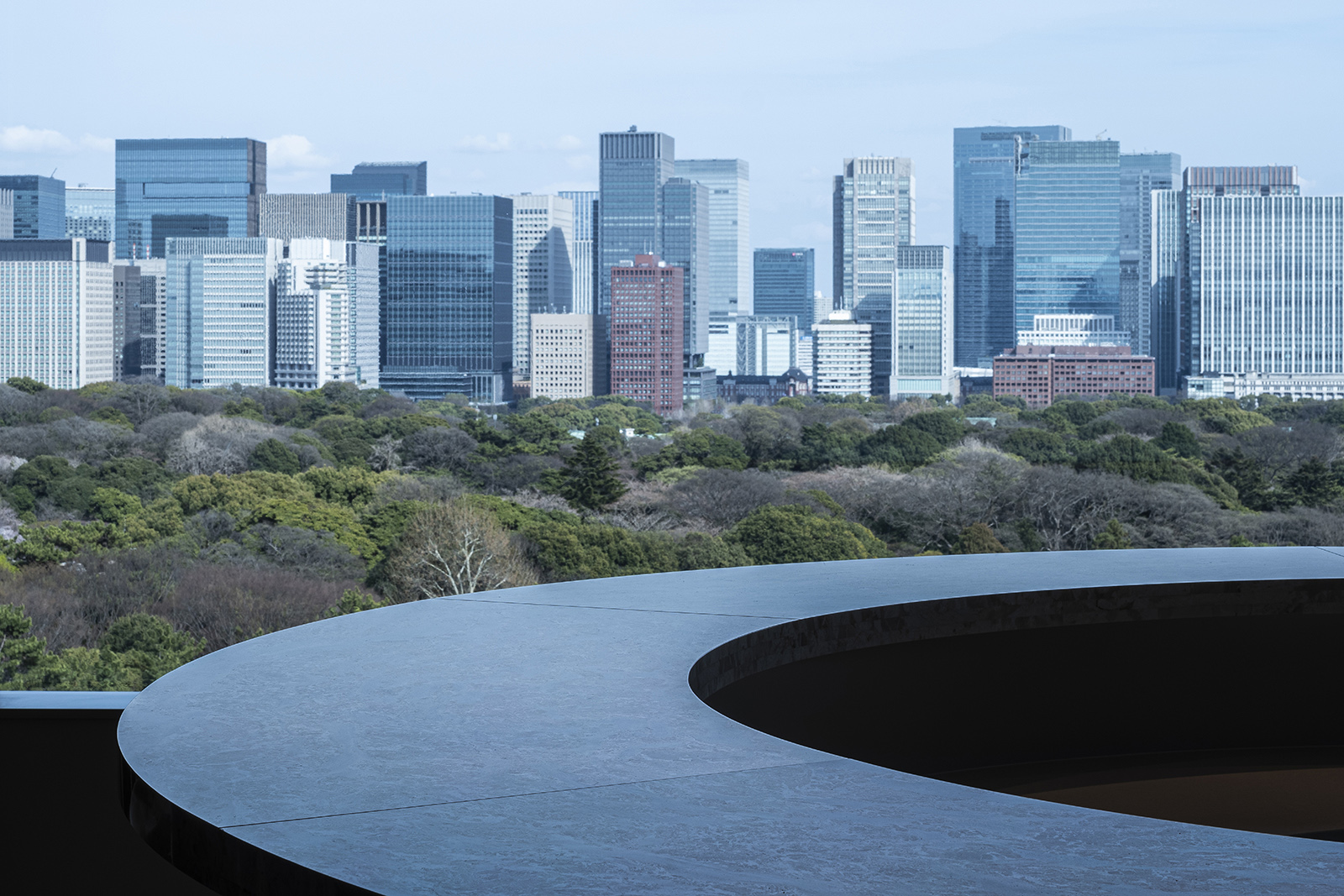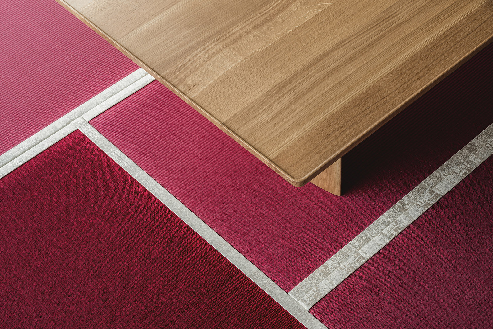 Cartier Japan オフィスリノベーションデザイン。働きながらもブランドの世界観を随所で感じられる事を目的とし、様々な場所でコミュニケーションが生まれる事を重要視した。メインエントランスでは、光によって表情が浮かび上がる素材が随所に施され、訪れる人の高揚感を高める。エントランスホールでは上質な素材と様々な光が織りなす明るい空間となり、ブランドを象徴する深みのある赤と輝きのあるシャンパンゴールが堂々とゲストを迎え入れる。入口脇の壁面には金箔でつくられたオリジナルのアート作品が大胆に広がる。ロッカールームでは対照的にトーンを落とした静けさのある世界観を演出している。 ルーバーによって適度に仕切られた円形のラウンジスペースでは、周りと程よい距離感を保ちながら落ち着いた雰囲気をつくりだす。足元に広がるカーペットに は繊細な色のグラデーションが施され、光の広がりに深みを与えている。特別な素材と光によってつくられた、新たなコミュニケーションスペースとなっている。執務エリア中央に設けられた大きな円形テーブルは中央から広がる繊細な木の表情の中、アクセントとなる金物のラインがそれぞれのエリアを柔らかく隔てている。窓際に広がるコミュニケーションラウンジは、円形カウンターを中心に様々な過ごし方を提供する。コーナーエリアでは壮大な景色を柔らいソファに包まれながらゆったりと楽しむことができる。奥にある小上がりの畳空間では靴を脱ぐことによって気持ちの切替ができ、ゆったりと、時には背筋を伸ばしながら、心を落ち着かせられる特別な場所 。ブランドの世界観と日本の美意識が織り交ざる新しいオフィス空間となった。
