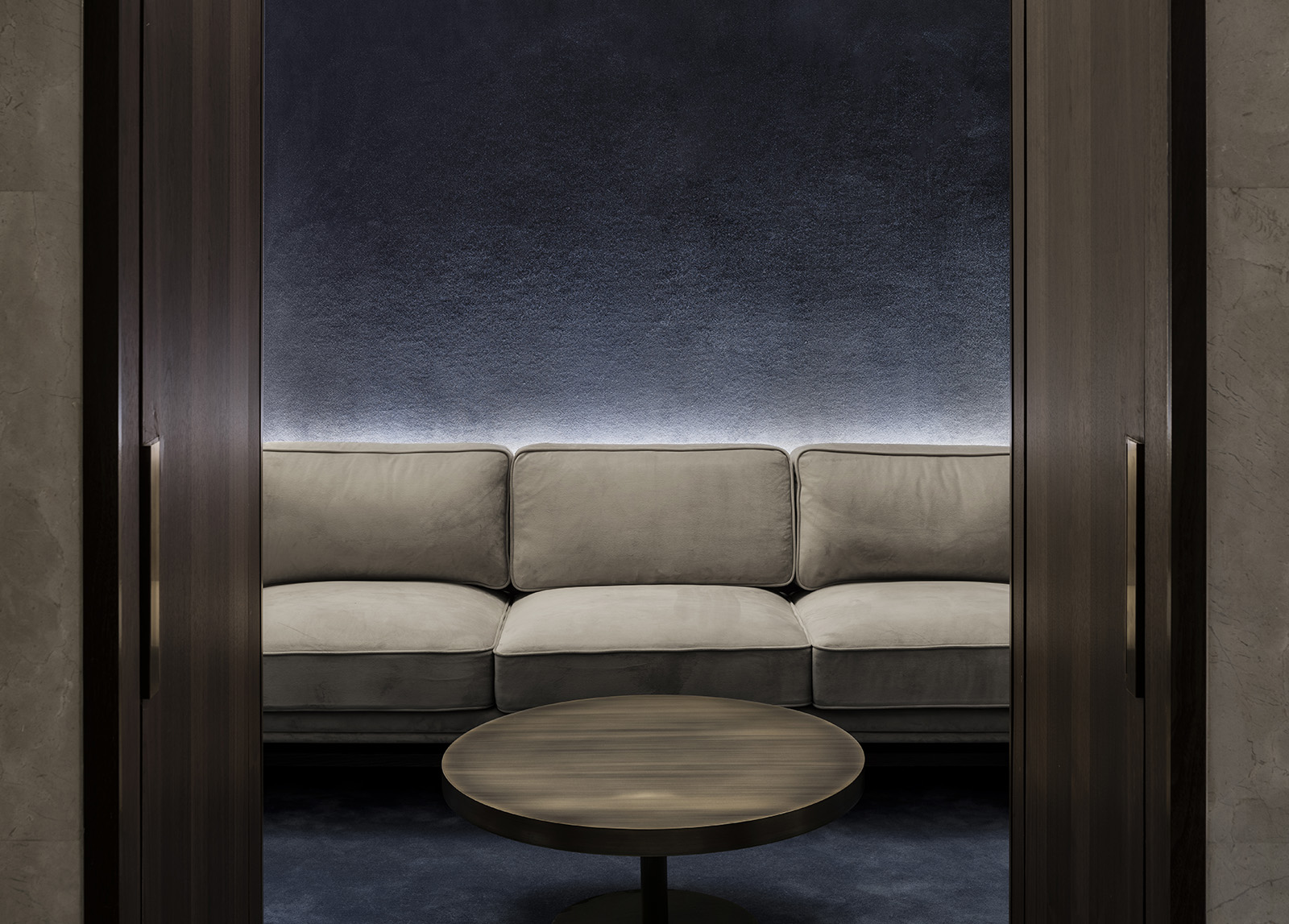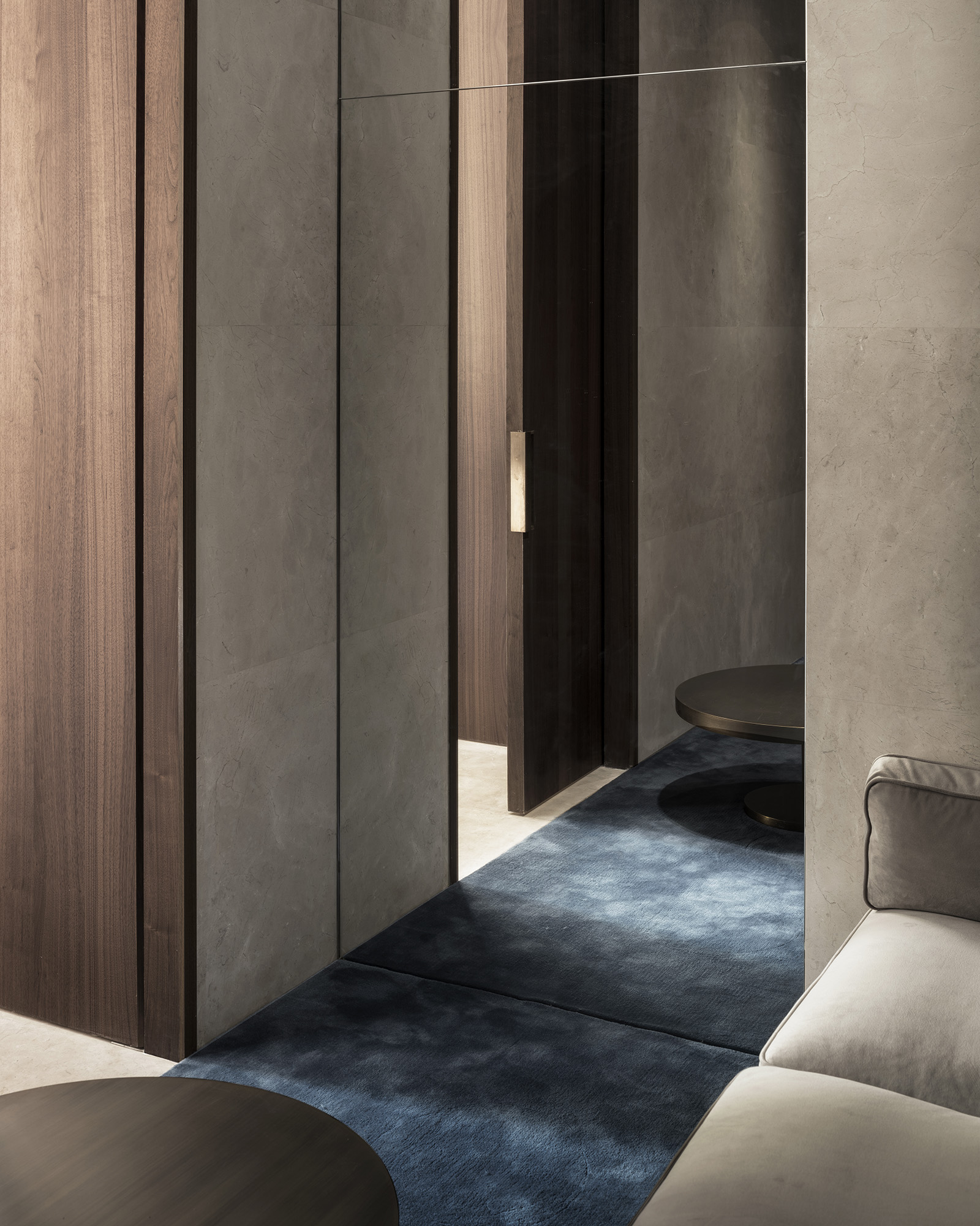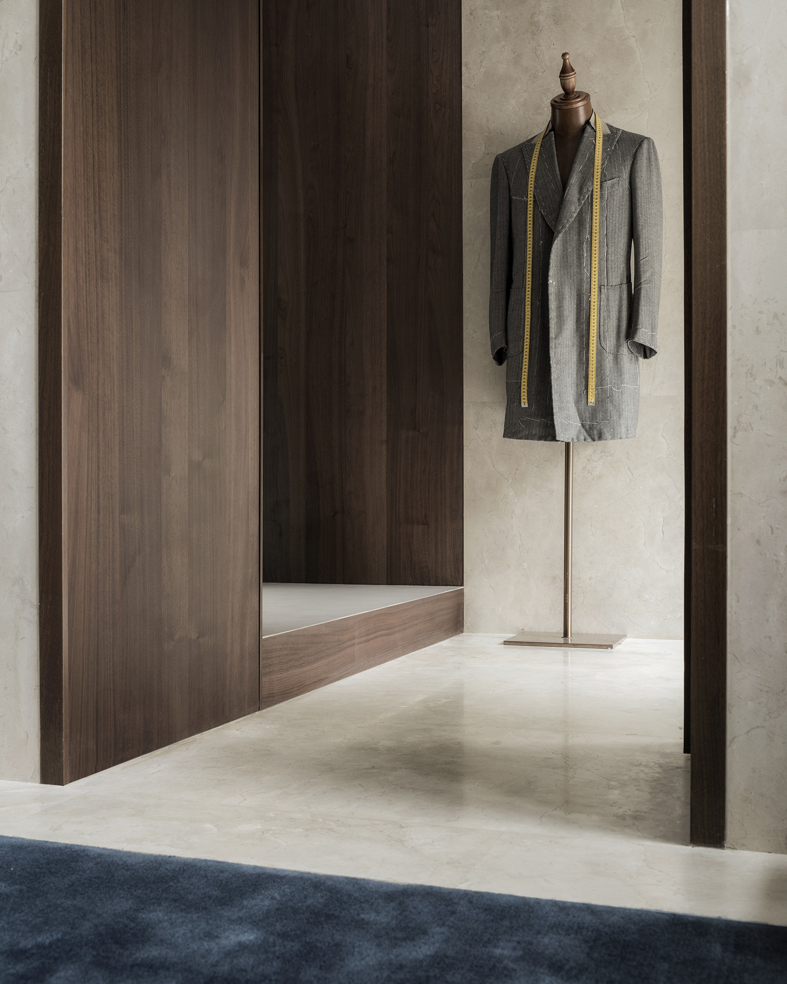Flagship store for Genttio, a luxury tailor brand from China. The brand's commitment to authentic materials is expressed by elegant marble and sophisticated wood details. A series of pendant lights focus onto the center counter to match the neatly displayed suits. The blue color in the space changes its expression in response to daily light, reminiscent to the refreshing Mediterranean Sea of Napoli, Italy, which connects to the core of the brand. By carefully combining various selected elements, the space becomes a high quality environment with sophisticated atmosphere for the customer.