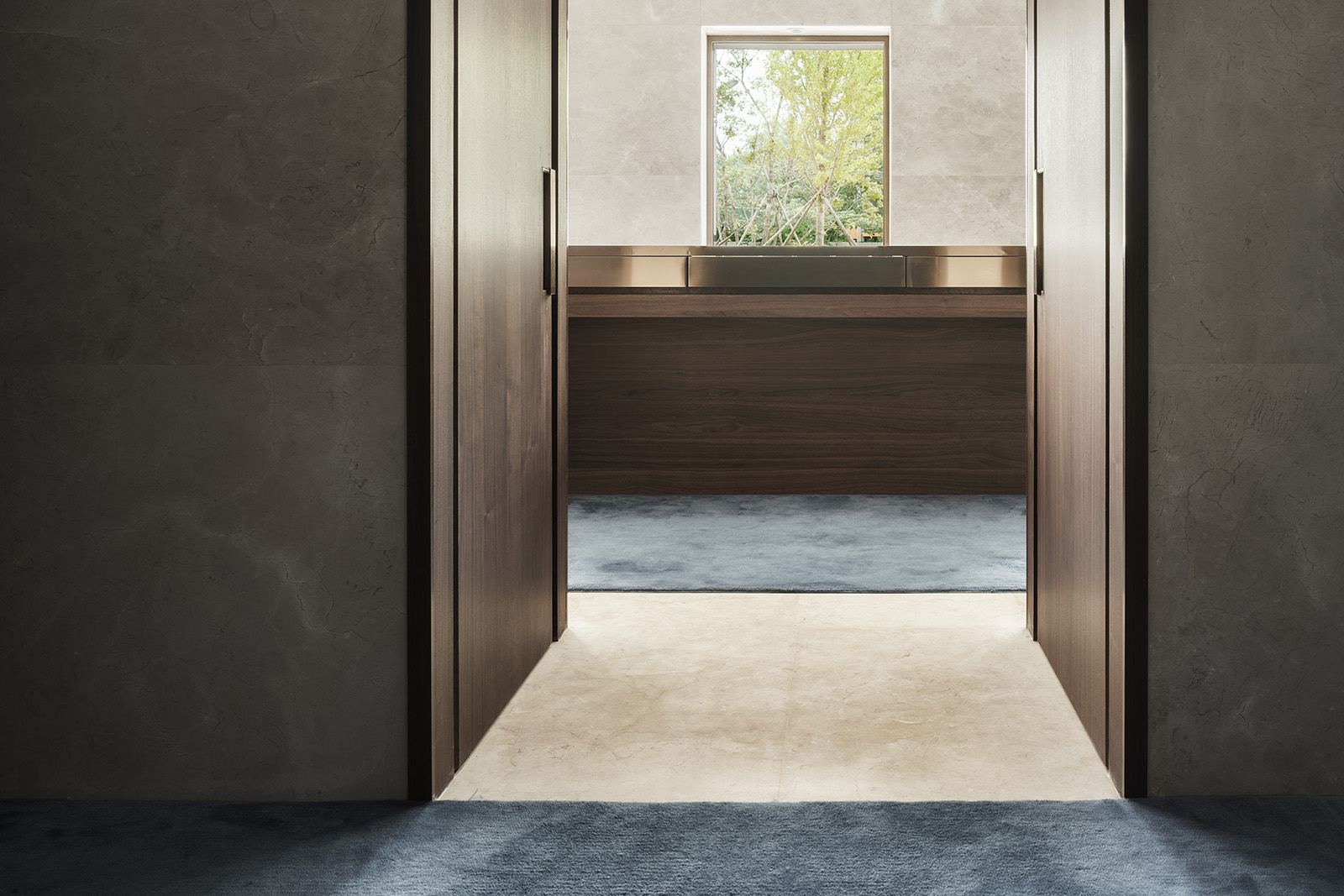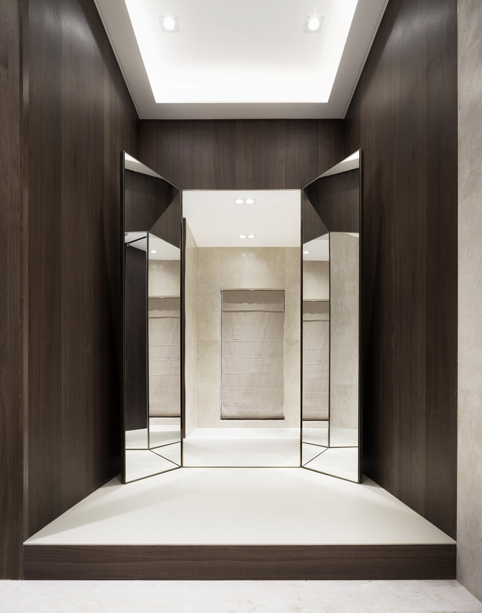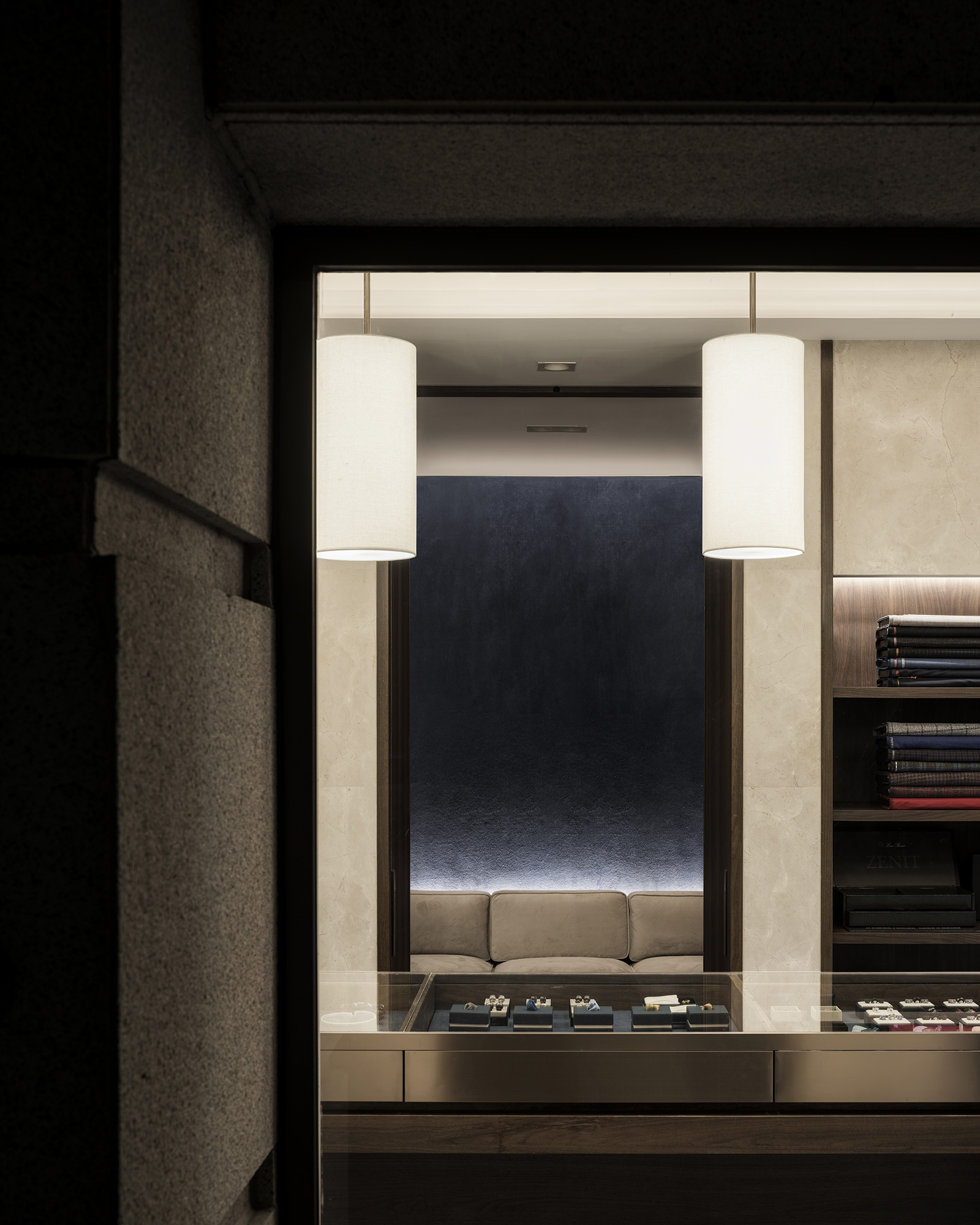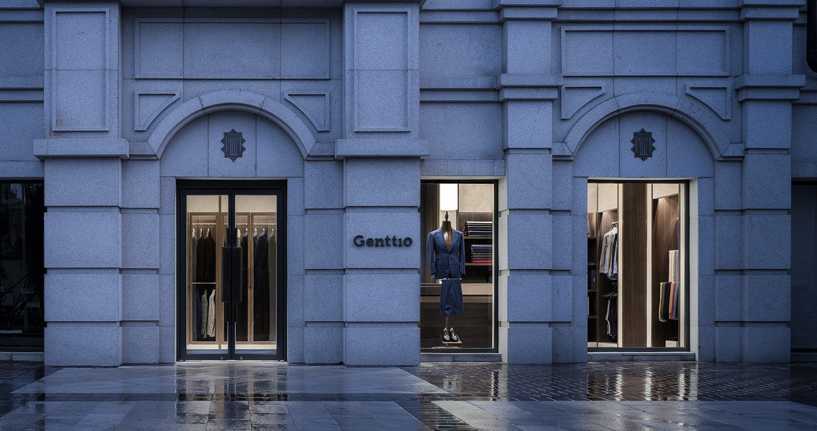 中国発の高級テーラーブランド、Genttioの旗艦店。ブランドの本格的な素材へのこだわりを、優雅で軽やかな大理石と洗練された木のディテールで空間を構成した。整然と並べられたスーツと呼応するように、連続したペンダントライトが中央のカウンターをフォーカスする。 時間帯によって変化する光を受けて表情を変える空間の中のブルーは、ブランドが表現しているイタリア、ナポリの爽やかな地中海を連想させる。厳選された様々な要素を堂々と組み合わされることで、上質で近代的な空間となった。