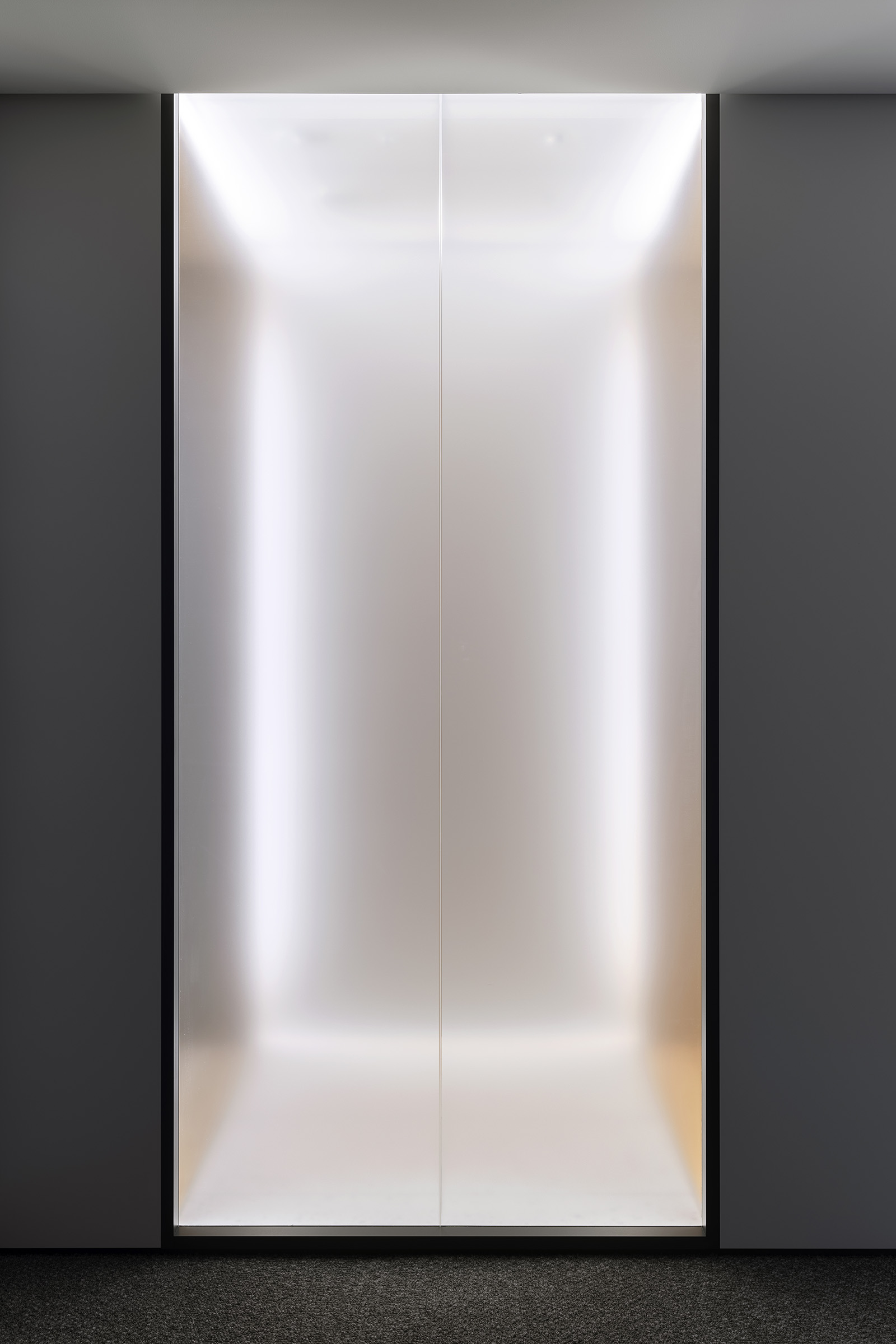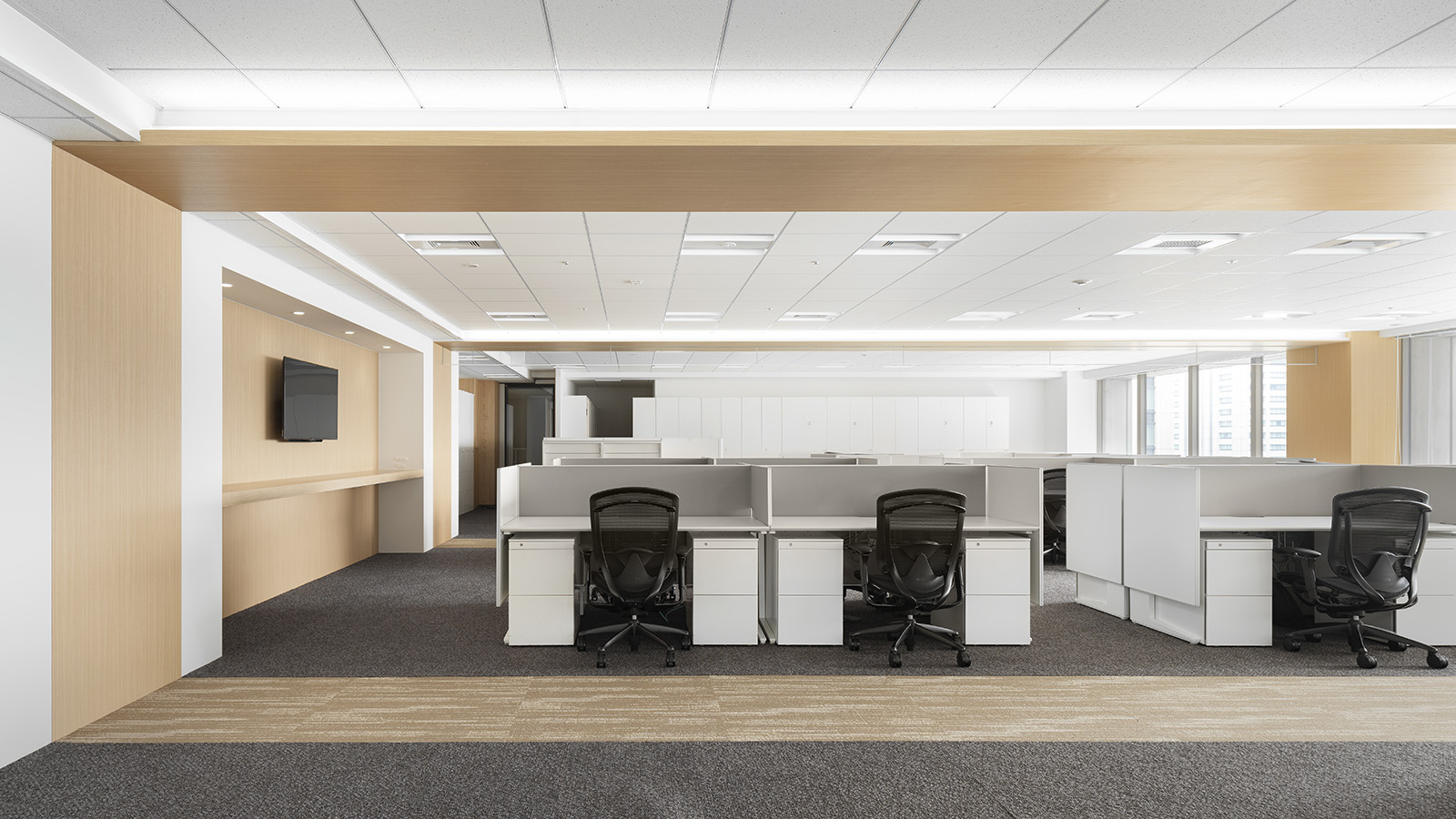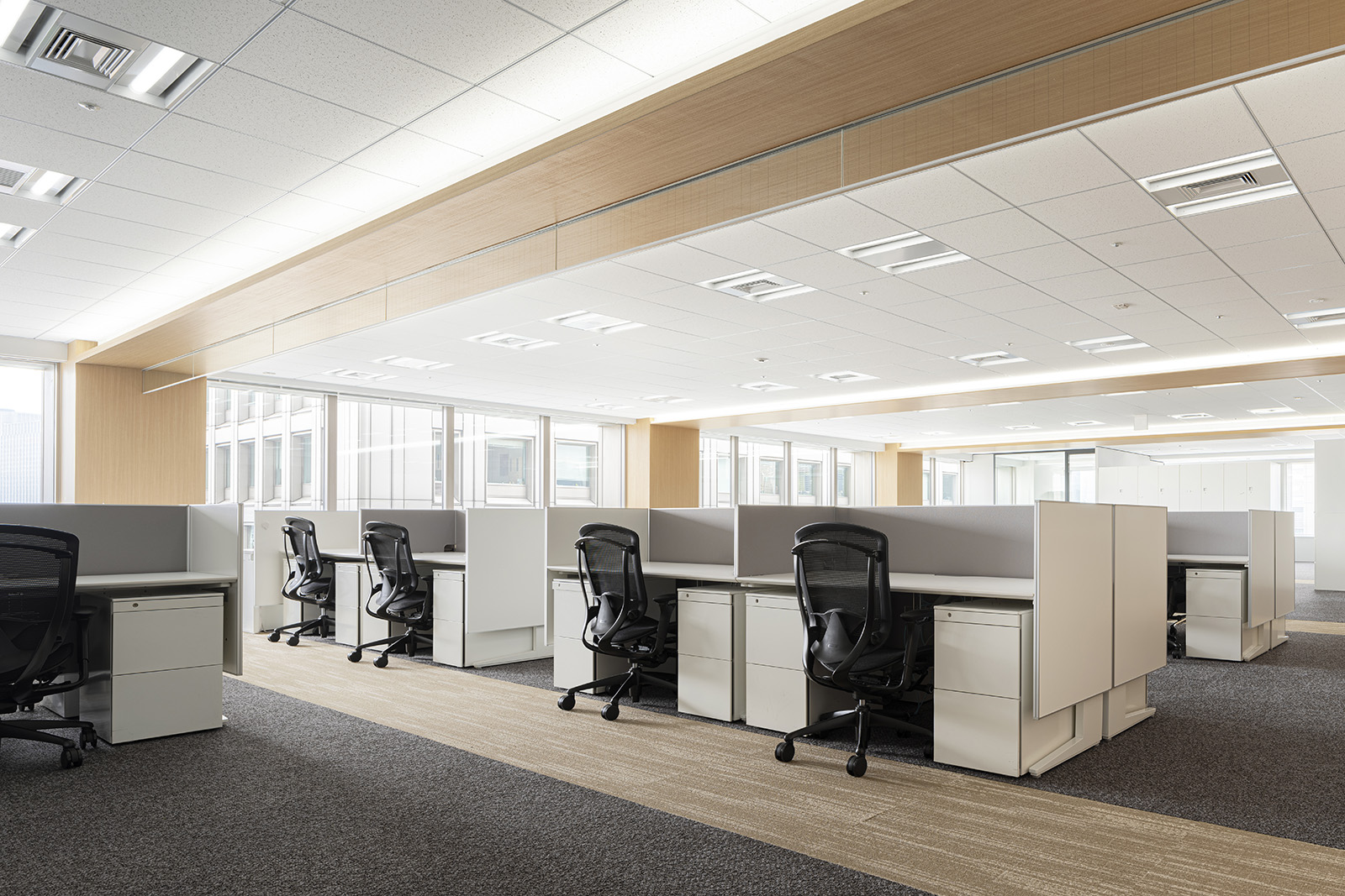 New office design for Hakuhodo Foundation. I IN expressed the sincere attitude of the Foundation, involved in various educational-related support and activities, with authentic and immense design. The entrance area opens up with a space composed of a combination of grids and different materials, creating a modern and sublime world, while emphasizing the solidity of the office. In addition, the expression of the wood used everywhere is unified with a pattern and a color that fits well with the Foundation’s manner and sincerity utterance. In the corridors and working area, light gates create a warm ambience and rhythm in a simple, effortless space. Surrounded by sophisticated materials and soft light, the interior became an distinguished office space.
