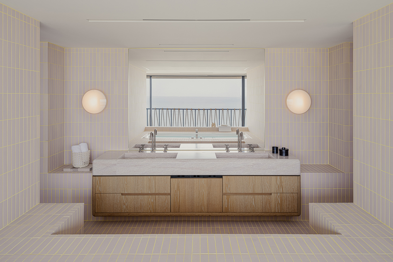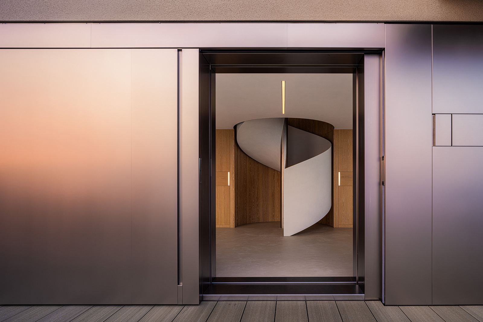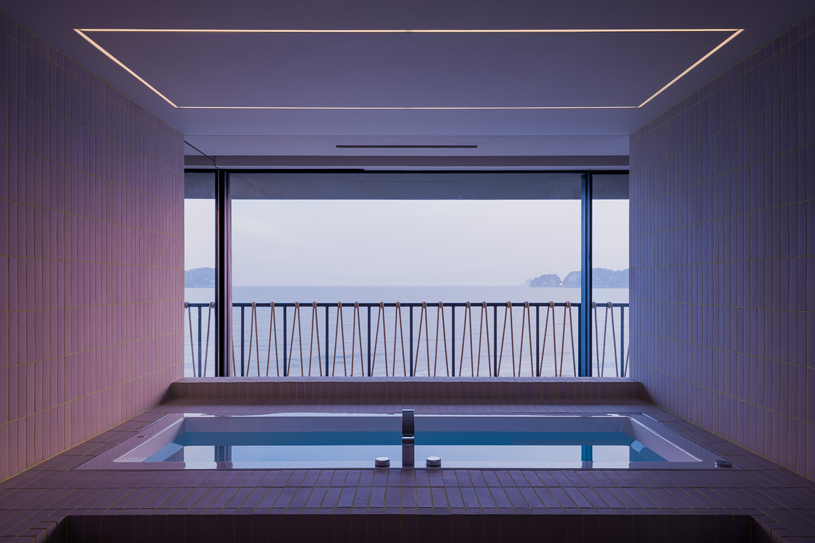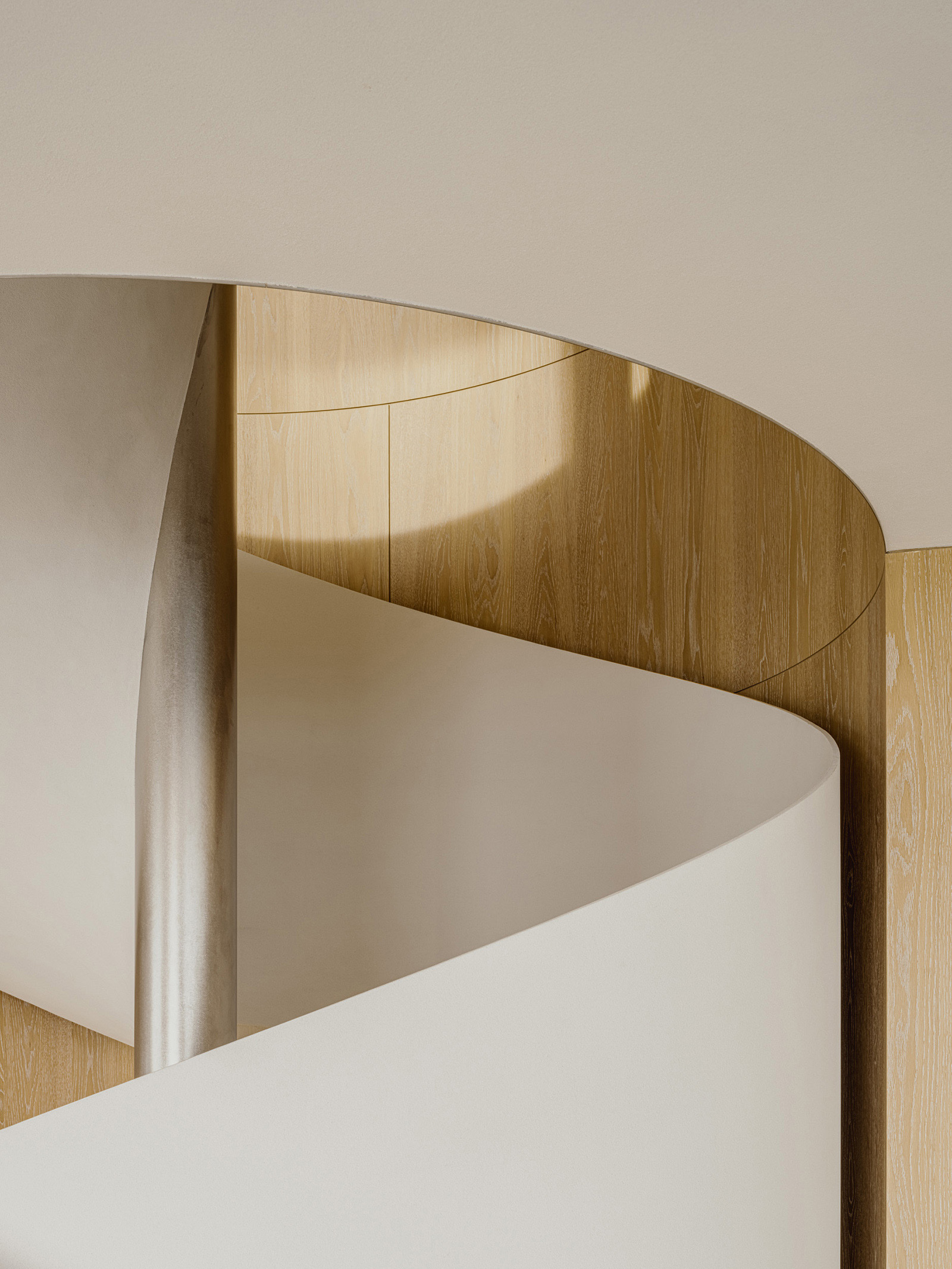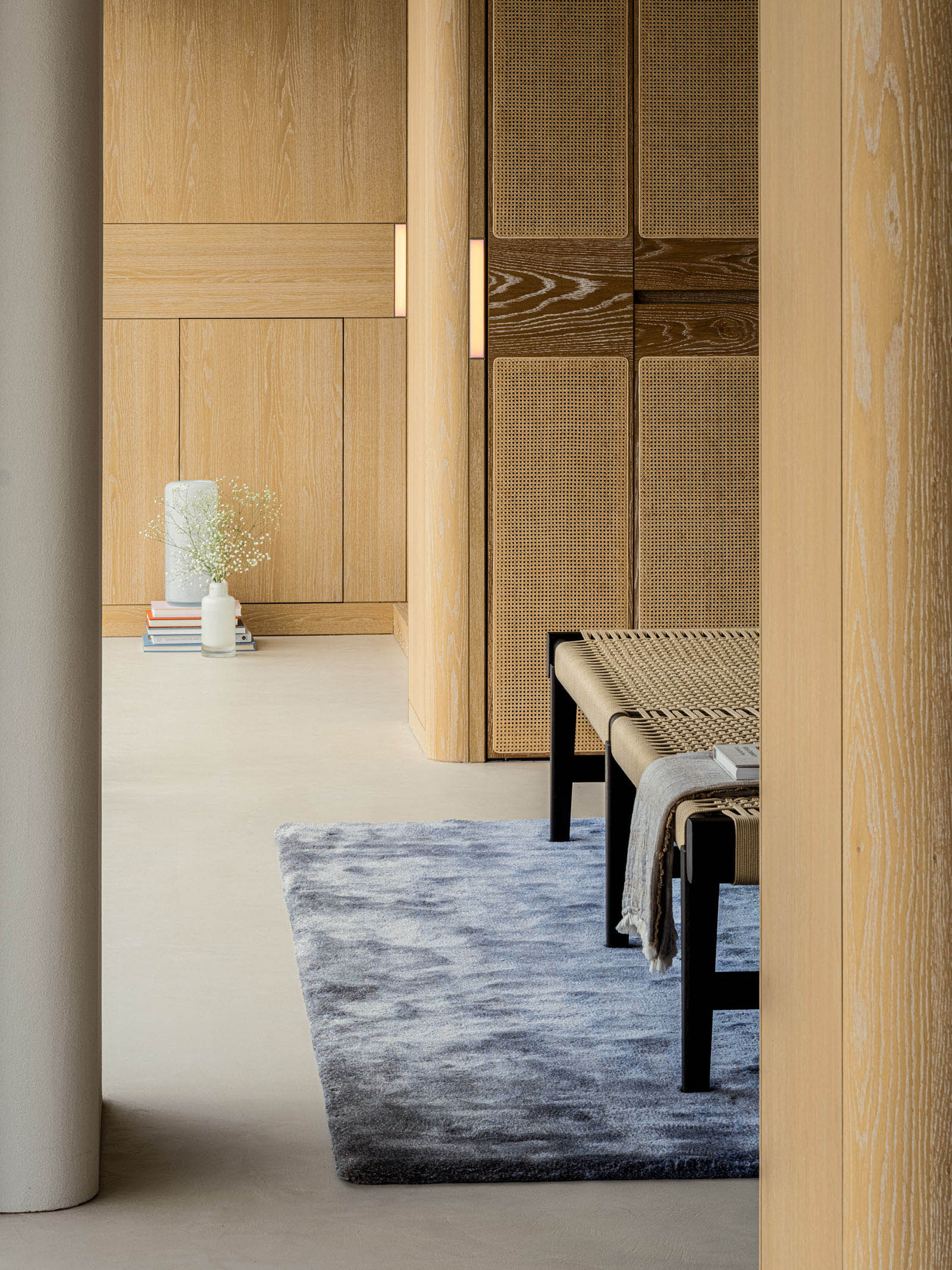 Lulla House is a weekend house that reflects a client’s lifestyle who has launched a fash-ion brand. It serves as both the owner’s residence and the brand’s home. The layout, mate-rials, furniture and details exude elegance, uniqueness, majesty, softness and suggestive-ness. For this house, the design aim was to depict the client’s dignified personality through the space itself. Surrounded by the ocean, the beach and the sky, the location is so overwhelming that you feel like you are part of the environment. Looking out of the window, all elements of the exterior scene are captured within the frame: Waves flowing, birds drifting in the wind, people playing on the beach, a distant coastline with mountains faintly visible and the sun setting between the sea and the sky. The large windows on the west side were designed with a sense of scale, making it feel as if one could physically immerse oneself in the outside world. In the centre of the space, a newly installed spiral staircase awaits visitors, while lights on the walls guide and invite people to each space like a lantern. The wooden pieces in the house were brushed to give an impression of life-like texture. The human sensibilities emanate from the floors and walls, which were me-ticulously finished by hand on-site, enriching the space with a touch of life and ele-gance. On the second floor, light reflected from the sea enters the entire space from the living room to the dining room. To disrupt the monotonous series of wide openings, a solid titanium volume was intentionally inserted between the two. When the titanium volume is opened, it transforms into an entrance from the terrace. It has a very distinct character; an intervening vol-ume that creates a rhythm of natural light within the living/ dining space. The kitchen and closet doors are made of rattan, keeping the design light to allow light and air to pass through. The rat-tan, crafted through the act of weaving, evokes an atmosphere of handcraftsmanship, much like the process of making clothes. The third floor of Lulla House has a unique layout. Going up the stairs, one would be greeted by an open closet strategically placed at the house’s core – a bright and airy space – to symbolise the centrality of dressing in one’s lifestyle. The open bathroom, which gives one a sense of unity with the ocean, occupies nearly half of the third floor. From the shower room and vanity counter to the bathtub, spaces for inter-acting with water are seamlessly connected. The pink tiles are assembled with yellow grout as an accent, making the space appear fashionably playful, echoing the process of working with cloth and thread. All the furniture was designed with the client’s individual character in mind. A dignified appearance, graceful figure and pure ideas, all of which harmonise beautifully together under one roof.
