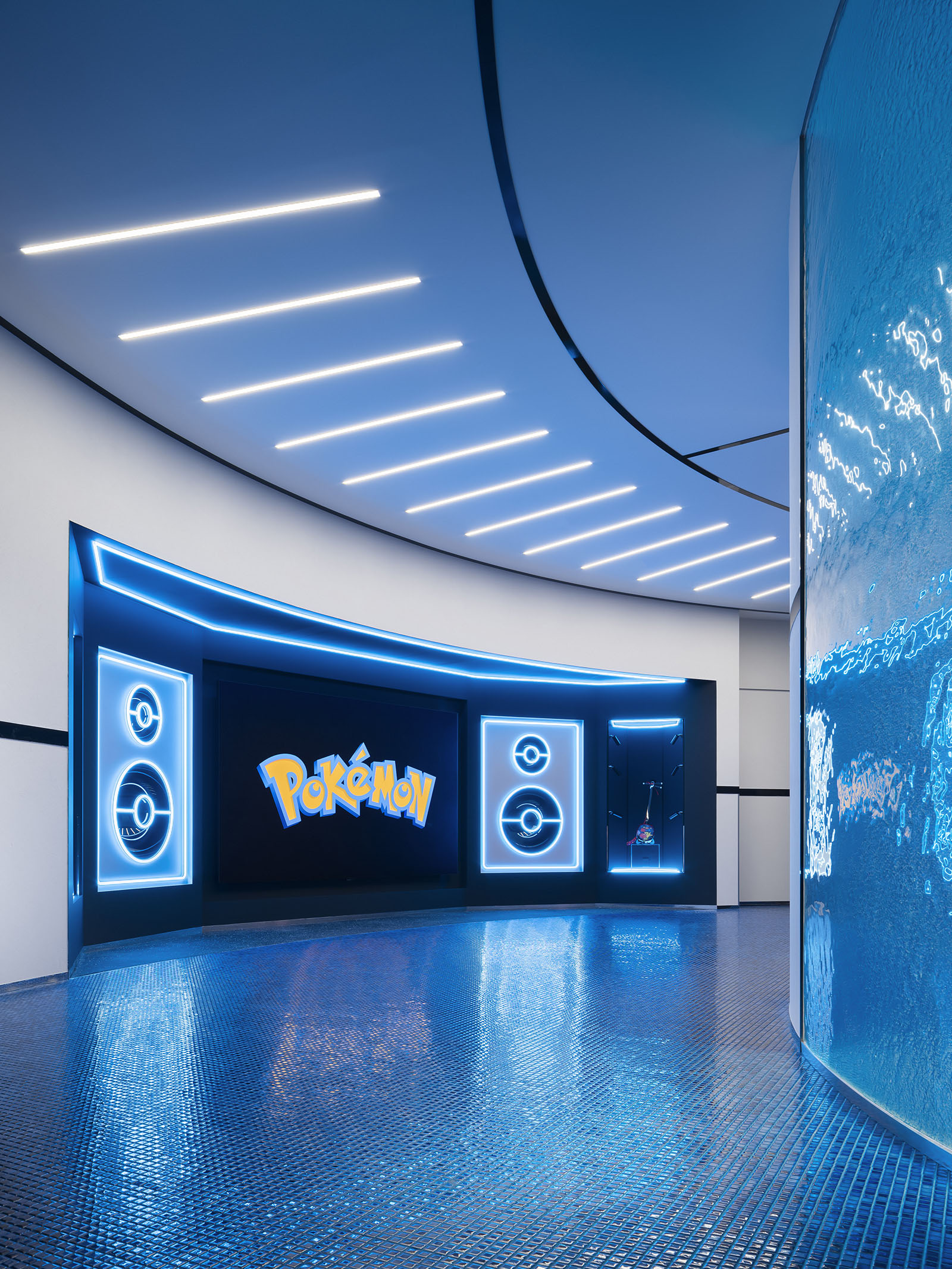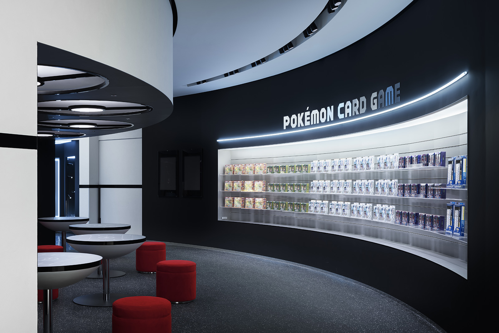 The Pokémon Center is a hub of all things Pokémon — a store, gaming space and information centre to share the latest character and game news. Inspired by the worldview of the Pokémon franchise, the Pokémon Center is designed to give visitors the impression of stepping into a video-game. Its open-plan circular enclosure and continuous floor space resemble architectures of an imaginary world, while evoking the caverns and landscape of the Pokémon universe. The Monster Ball, its iconic shiny red and blue case, is repeatedly referenced throughout the space, but in minimalist graphic forms. This balance of design subliminally shifts the focus from the space itself to the understanding of Pokémon that develops within the space. Abstract and bold representations of Okinawa’s abundant nature, its ocean waters and verdant greenery, add to the immersive nature of the otherworldly space. Colour and texture evoke deep waters at the circular core and heart of the Pokémon Center, where visitors can access information and Pokémon games though videos and presentations. Surrounding this lie experience zones with changing content to continuously excite visitors — spaces that introduce card games, showcase new visual media and offer the latest goods. The Pokémon universe is already well known to the public, this physical store, however, can convey the appeal of Pokémon to an even wider audience by connecting the virtual and real worlds.