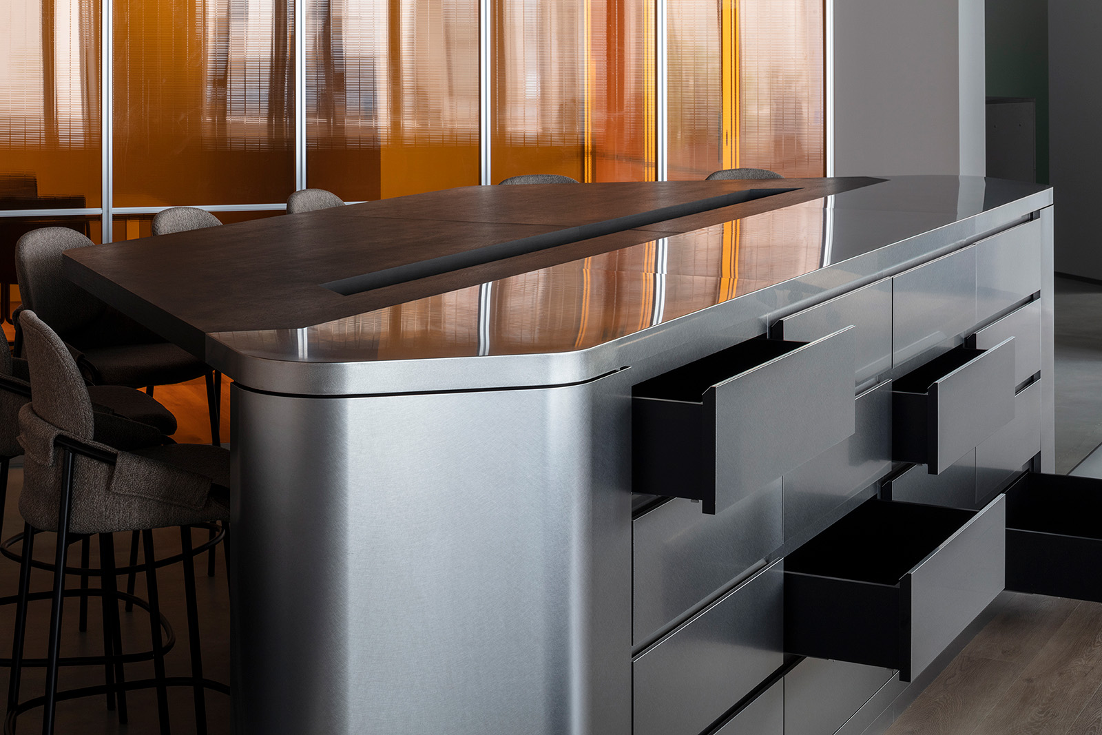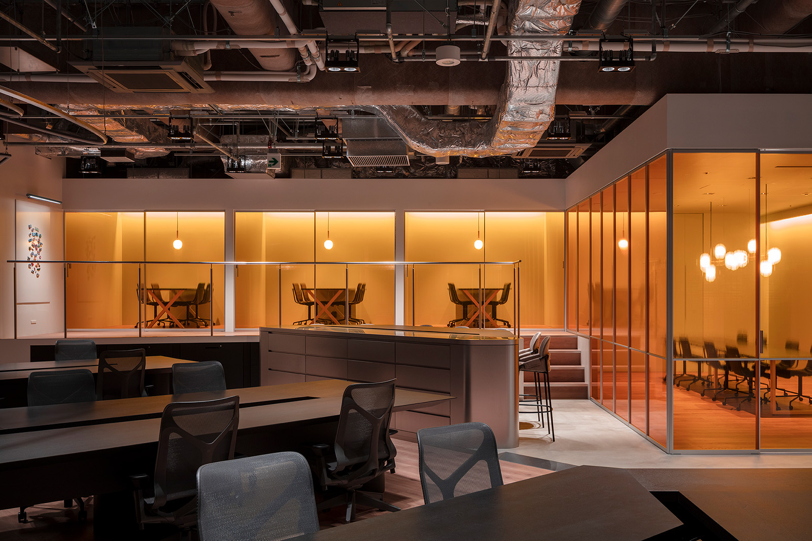 The flagship office for Wondertrunk and Co.—a travel company that shares the lesser-known beauty of Japan with the world—reimagines the workplace as a space of exploration, curiosity, and connection. As a company that brings Japan’s lesser-known cultural and natural beauty to a global audience, this project translates the essence of “travel” into a spatial experience. Inspired by the company’s ethos and diverse team, the design embraces openness and incompletion, allowing for flexible use and spontaneous encounters. A luminous, freeform light sculpture hovers at the heart of the space, visible from the streets of Shibuya below, symbolizing movement, global exchange, and the company’s outward-facing vision. Below it, an organically shaped communal table with no fixed position encourages users to wander, choose their setting intuitively, and engage in new conversations each day. Skip floors, material contrasts, and subtly warped glass add visual intrigue and spatial rhythm, evoking the surprises and serendipities of travel. Echoing the expressive lines and colors of Wondertrunk’s logo, the space becomes a lived expression of their mission, transforming the everyday office into a dynamic, narrative-rich landscape of discovery.